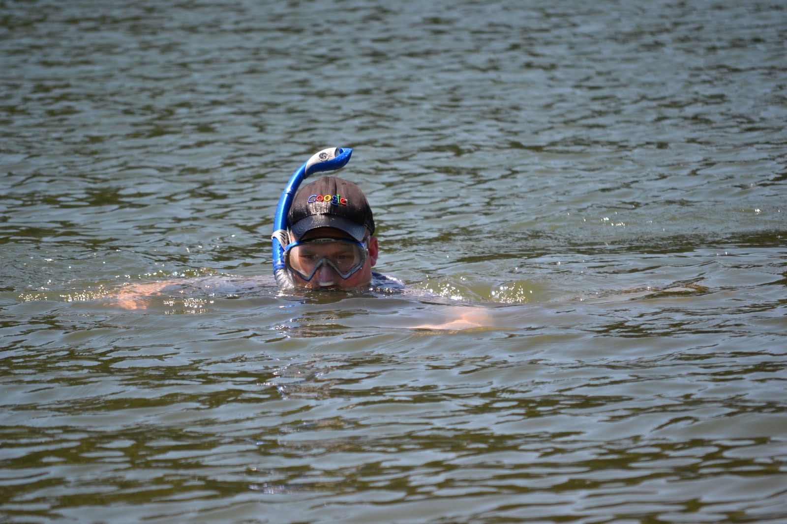 Oh boy! Tyler was having a lot of fun snorkeling. After he was all done he told me that he was enjoying checking out old logs and spotted one far off and went to inspect it but as he got near he discovered that it was a huge dead deer. He almost lost it then and there and swam away as fast as he could! He saw a few fish and that was it. He didn't snorkel the rest of the time...I think he had seen enough for a while...